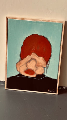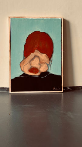 L’opera RAME esplora la fragilità e la deformazione dell’identità umana attraverso una figura enigmatica, sospesa tra astrazione e rappresentazione. Il volto, dissolto in forme morbide e innaturali, sembra svelare una metamorfosi interiore, un dialogo silenzioso tra corpo e psiche. I toni caldi del rame e della carne contrastano con lo sfondo azzurro chiaro, creando una tensione cromatica che amplifica il senso di alienazione e introspezione. La figura, priva di lineamenti riconoscibili, invita l’osservatore a proiettare sé stesso nell’immagine, trasformando l’assenza di volto in uno specchio dell’esperienza umana contemporanea: mutevole, fragile, eppure profondamente viva.